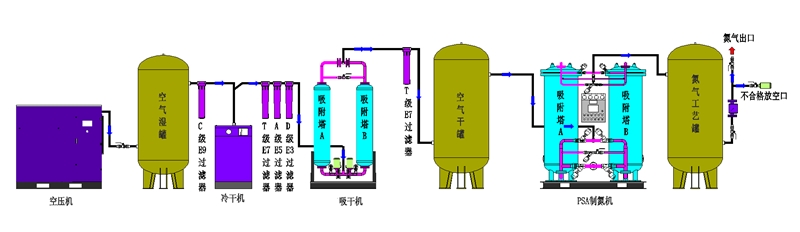 ??3.滲碳滲氮:制氮機所產(chǎn)氮氣可用于進(jìn)行滲碳后的防氧化冷卻,降低鋼件的內(nèi)氧化程度,提高爐氣分解率和零件的疲勞強度和破斷抗力;